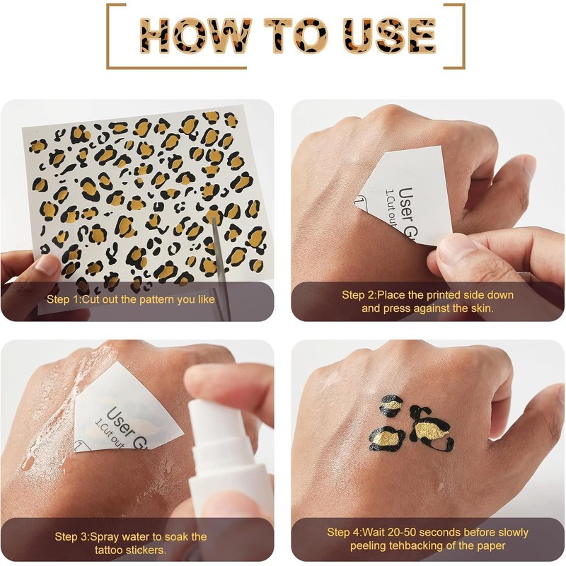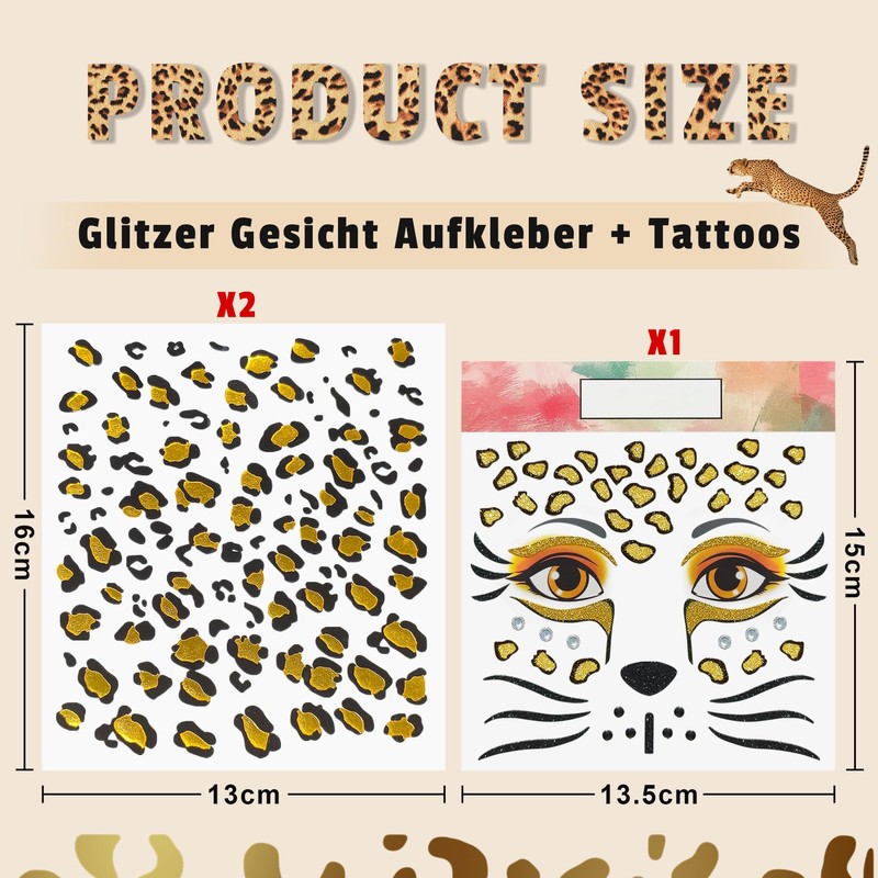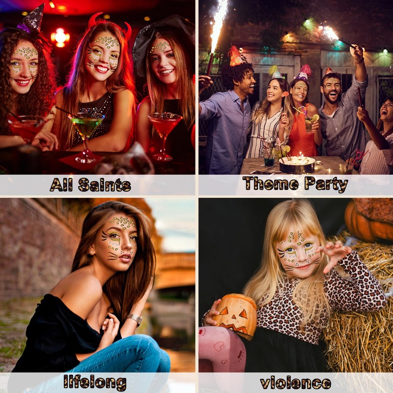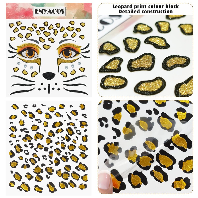 - Durable and durable: After strict quality tests and optimisations, our leopard sticker face has excellent durability and resistance to colour fading. Whether under the hot summer sun, in a damp, rainy environment or after a long time of sweat and friction, the leopard tattoo face can always retain its bright colours and intact patterns and will not lose its colours, fade or deform. So you can always wear the perfect leopard make-up from day to night and shine confidently on any occasion.