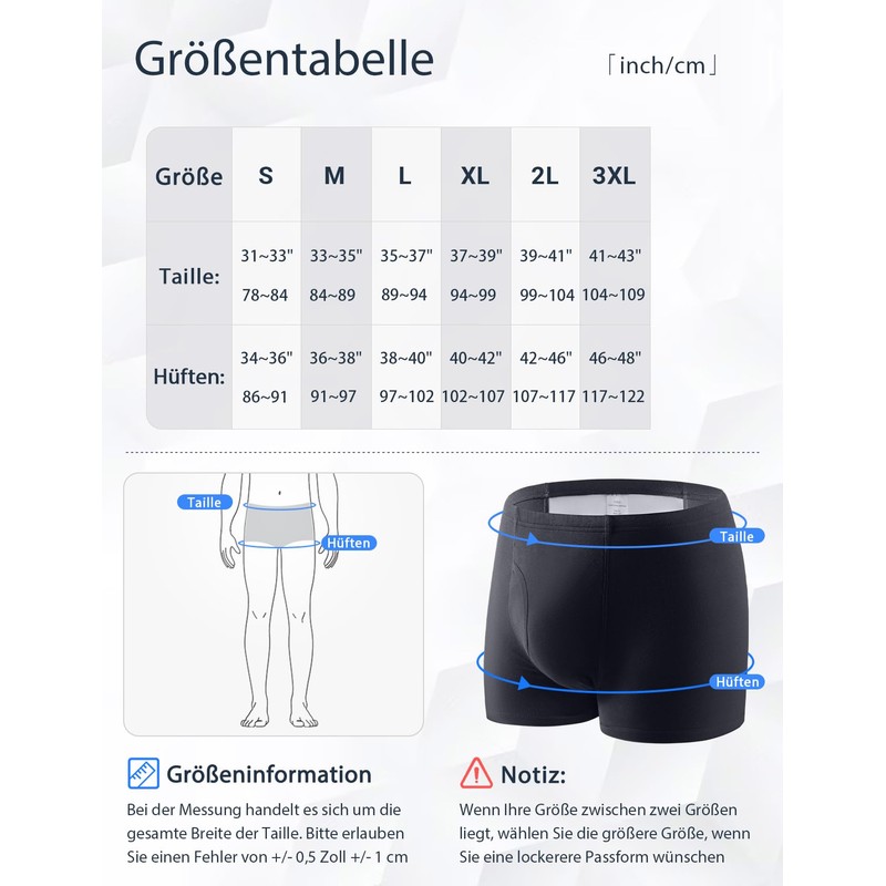 - High-quality material: Pants: 100% cotton; absorbent insert: 70% viscose + 30% polyester. Our incontinence boxer shorts for men are comfortable and breathable, fits snugly to the leg