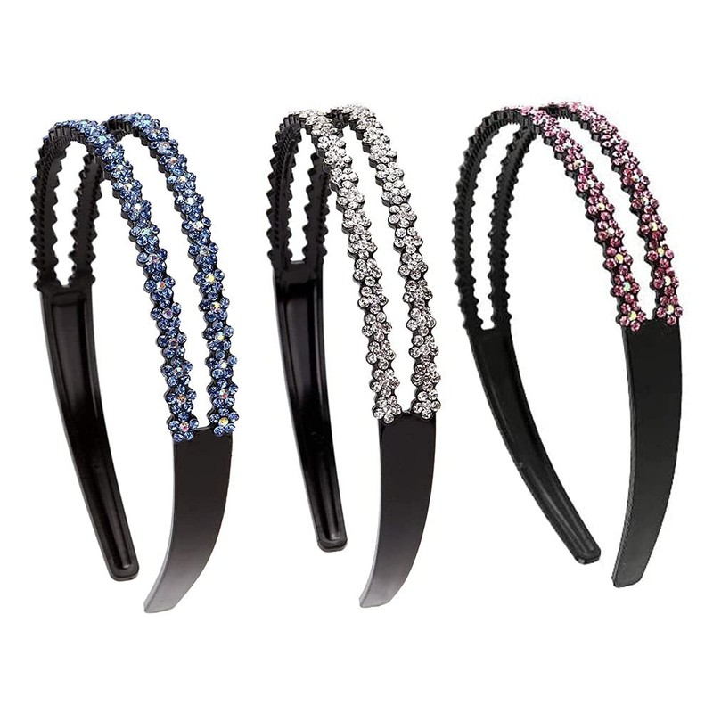 Pack of 3 Rhinestone Headbands, Rhinestone Headband, Fashion Rhinestone Headband, Non-Slip Hair Accessories, Elegant Hair Accessories, Headband, Non-Slip Hair Band with Teeth, for Women