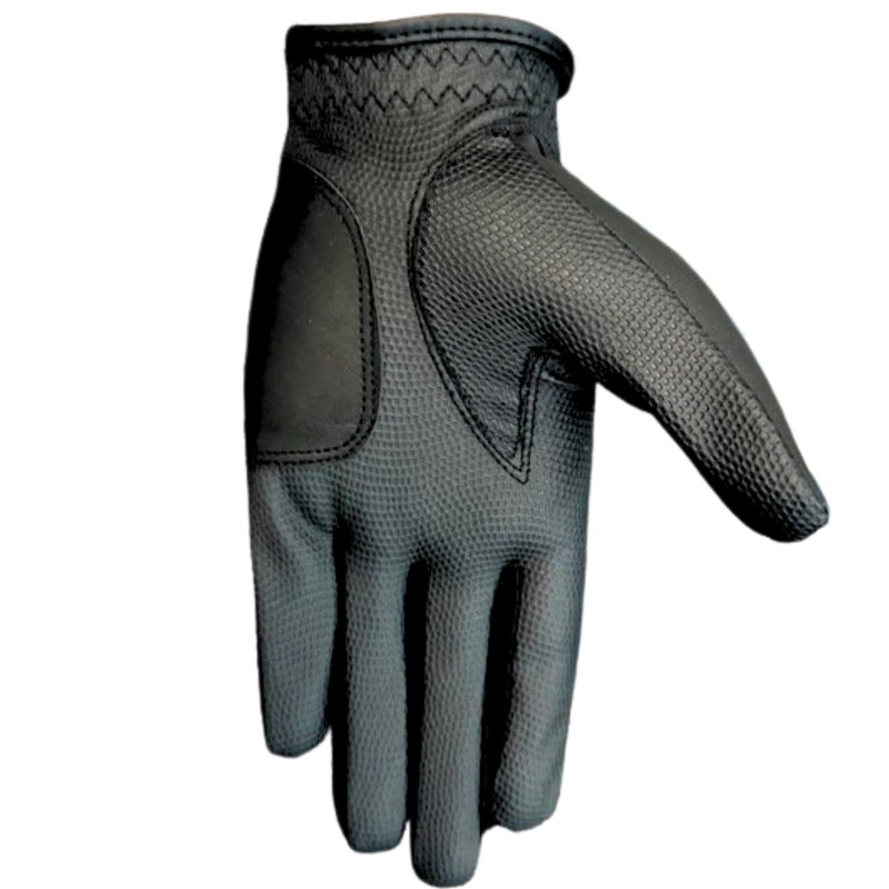 Pack of 3 Synthetic Microfiber Men's Golf Gloves – Adjustable Velcro Closure Strap - Suitable for All Weather Conditions - Soft Feel Grip - Left & Right Handed Golfer – Jet Black (M, Left)