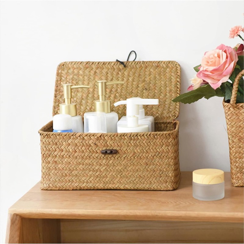 - Versatile Use These multifunctional seagrass baskets are suitable for storing snacks, skin care products, cat food, toys, books, socks and much more. They can be placed on shelves, in the kitchen, bathroom, on the vanity, in the TV cabinet, in the wardrobe or on the dresser. The seagrass storage baskets are the perfect versatile storage solution for any room in the home