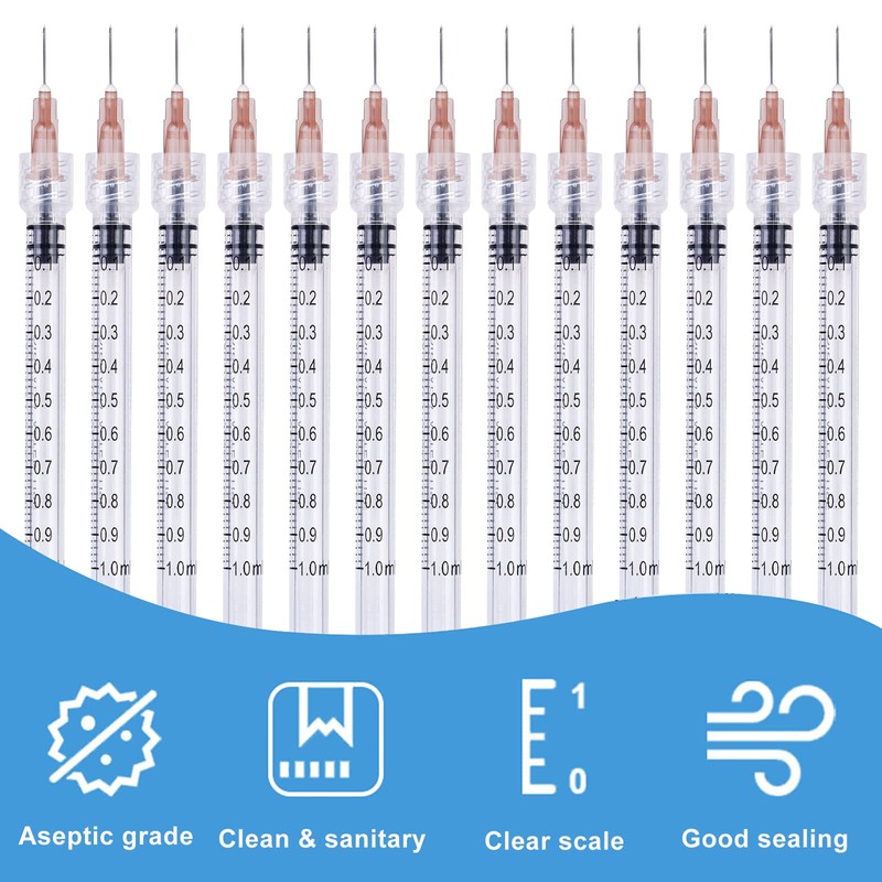 Pack of 30 1 ml Syringe, Plastic Tube with 26G-15 mm Head, Independent Seal Packaging, Minimum Scale 0.02 ml, for Feeding Animals, Liquid Measurement for Laboratory, Industrial Precision Application