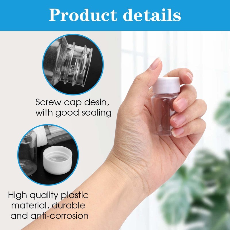 - Plastic bottles with screw cap: our 20 ml plastic bottles are all equipped with screw caps, which have good sealing performance and can ensure that the liquid does not leak. The fine ripple on the screw cap increases the friction between the finger and cap, making it easy to tighten and open.