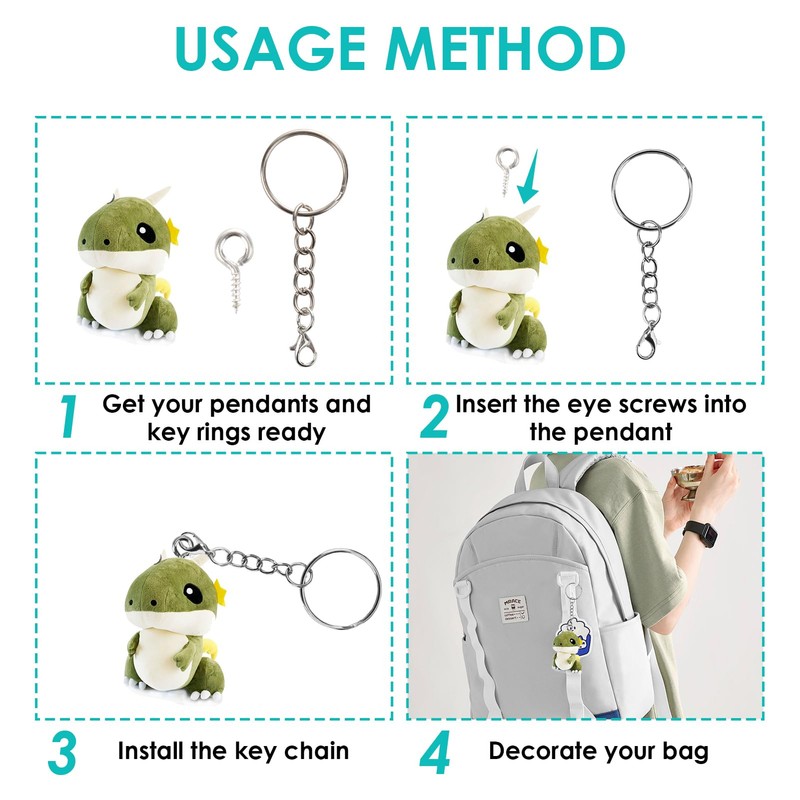 • Practical use and multifunctionality: each key ring is equipped with a convenient quick release carabiner, perfect for easily attaching and unhanging items; Use this kit to attach pendant toys or accessories to bags, backpacks and more; without the need for additional hardware