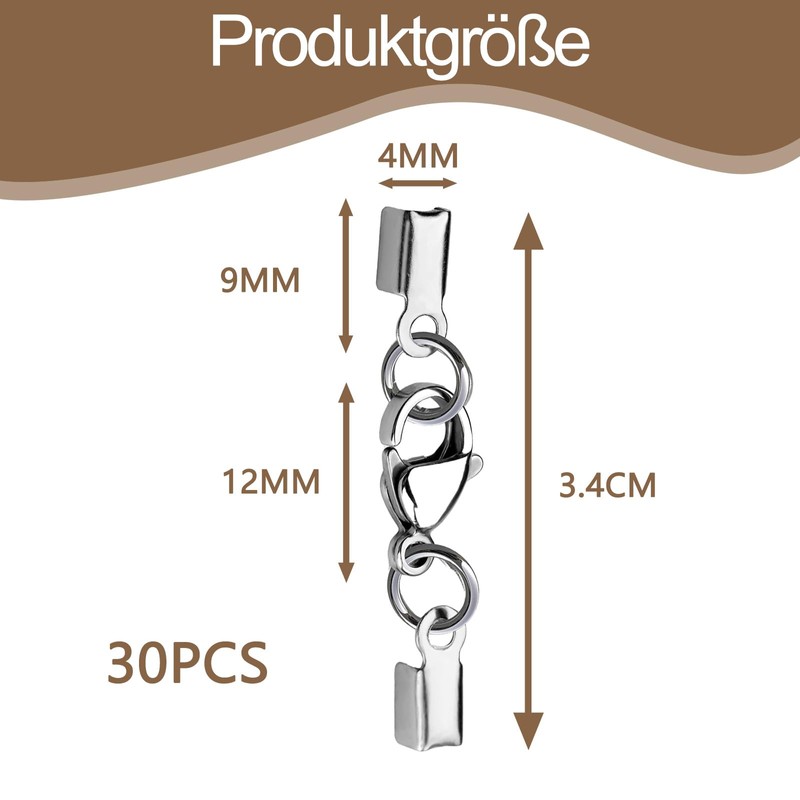 Pack of 30 Clasps for Bracelets, Chains, Clasps for DIY Chains, Leather Band, Jewellery, Silver