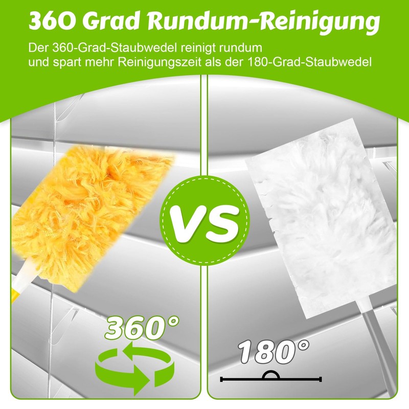 - 360° all-round design: the 360° feather duster dust collector is made of soft fibres with high lint density, which effectively improve electrostatic adsorption and catch more dust. Easily absorbs dust and hair from all directions.