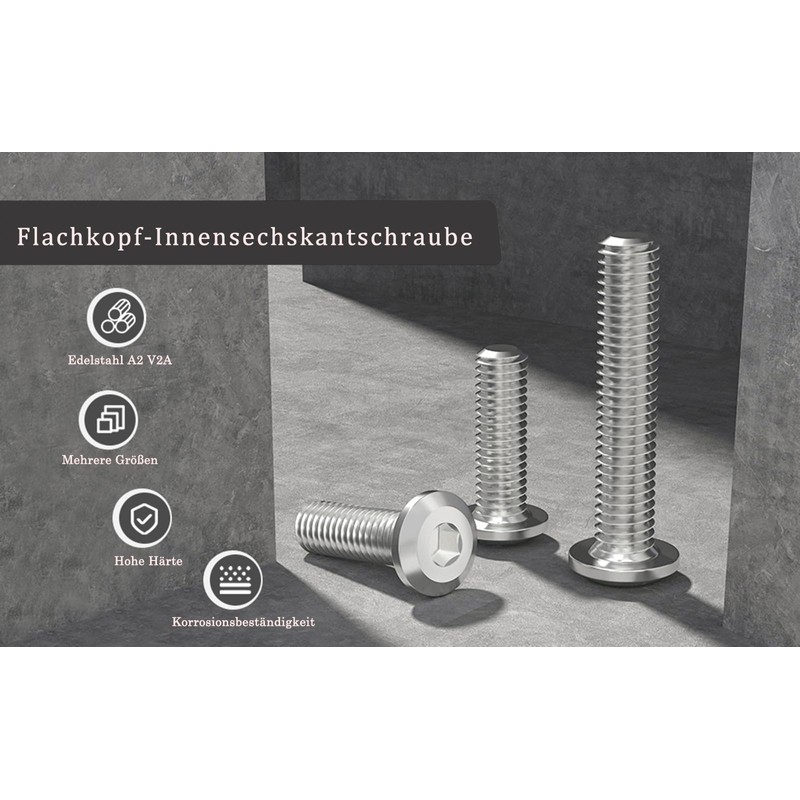 • ✔Practical design: M5 stainless steel screws have a hexagonal drive. This drive is ideal for screw connections where the screw head is difficult to access due to construction. Equipped with Allen key, the tightening effect is better.
