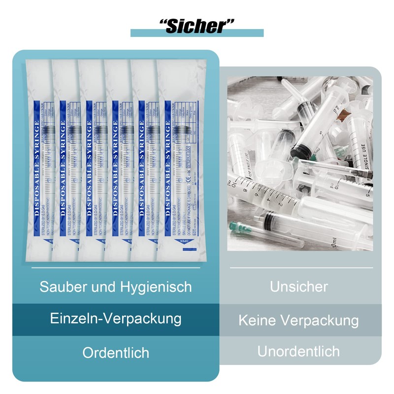 - Contents: 30 x 30 ml plastic syringe made of PET and printed scale as well as transparent cylinder, latex-free and silicone-free, safe in blister packaging. 2 x 30 cm flexible PVC hose