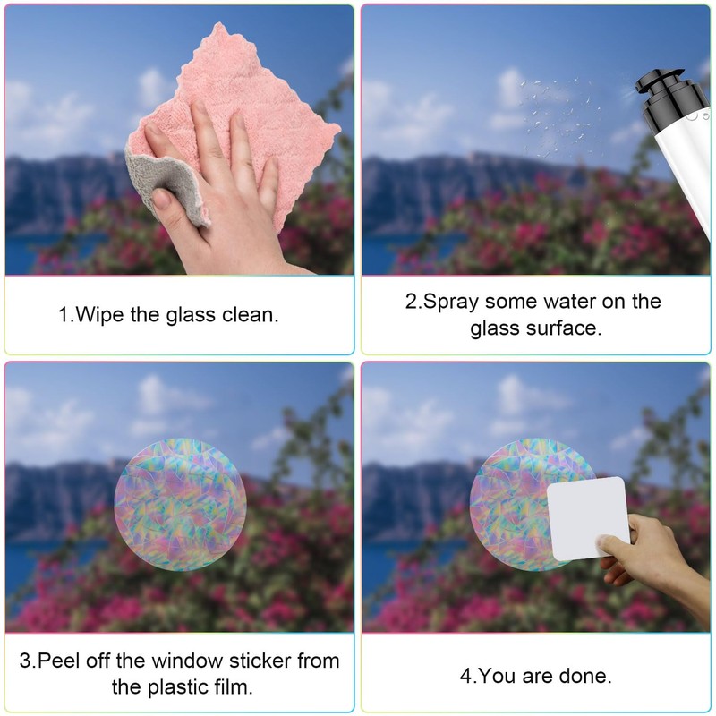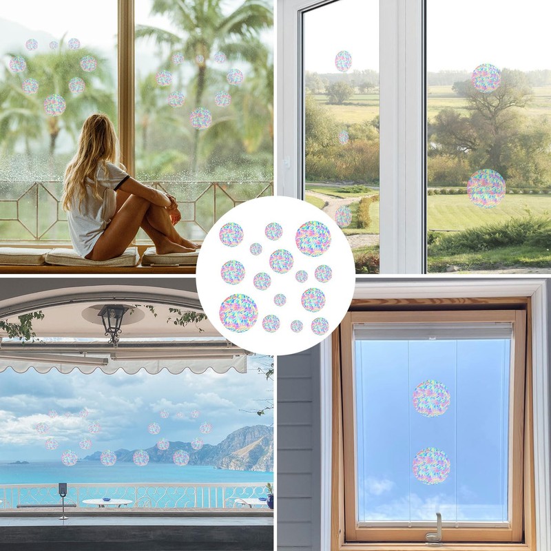 - Colourful prism pattern: the anti-collision window clings in the sun, which attracts the attention of birds and can effectively prevent them from strikes.Beautiful colorful prism patterns bring you a good mood when seeing.