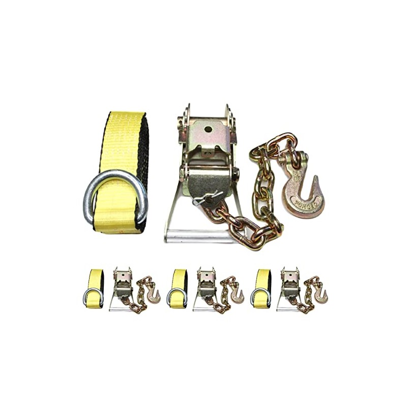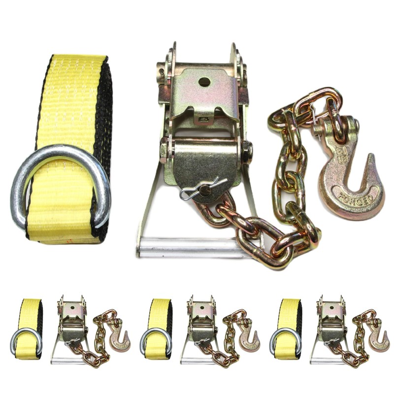 (Pack of 4) 2inch Ratchet G70 Chain Hook Tie Down with 2" x 8ft Lasso Strap