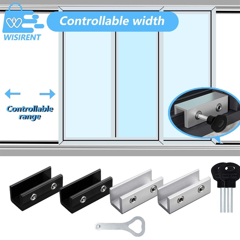 Pack of 4 Adjustable Sliding Window Door Lock WISIRENT, Adjustable Sliding Window Restrictor Sliding Window Lock with Key, Adjustable Sliding Window Restrictor for Sliding Door and Window