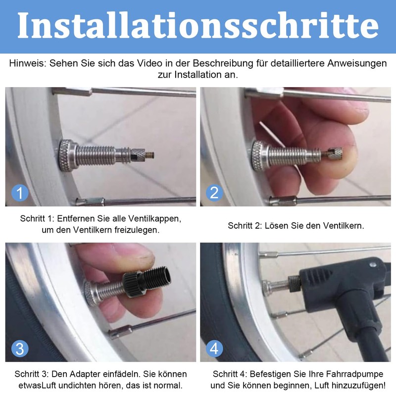- Easy to install: these bicycle valve adapters are easy to install and easy to use. You only need to manually put the cap on the tyre valve spindle and screw it tightly. In addition, you can also use your car's foot pump or compressor to inflate tyres and pumps. And it is very suitable for use with compressors