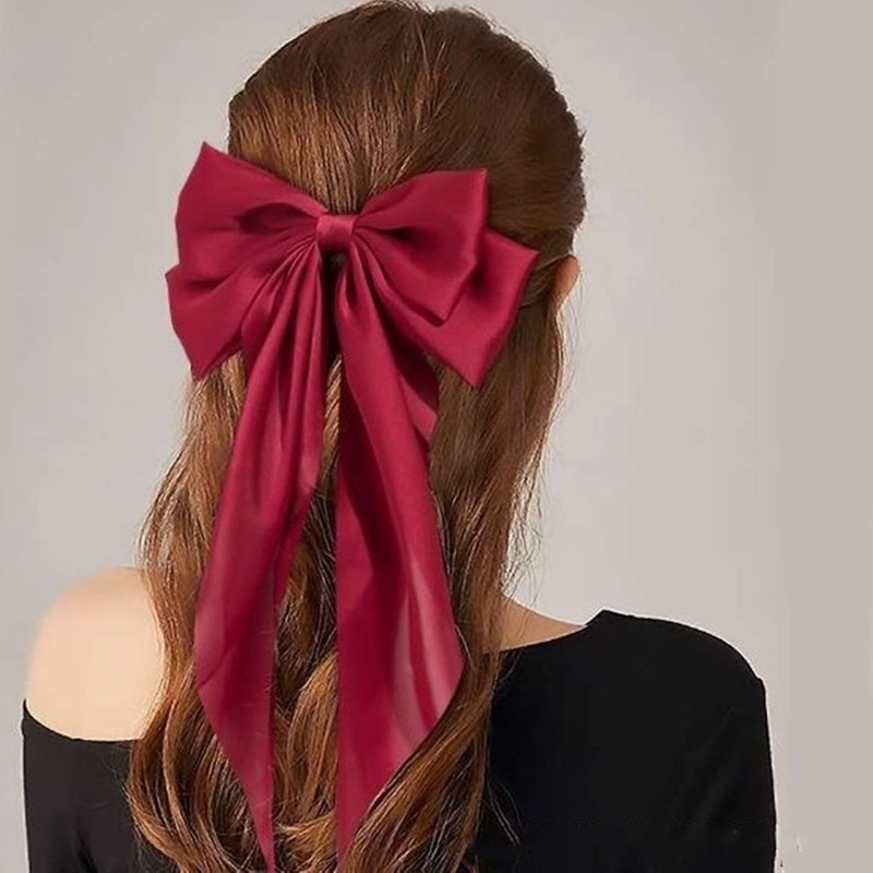 - Well made with durable satin and metal alloy. These satin hair clips with large bow look more pretty, chic, beautiful and exquisite. Comfortable, soft for women or teenagers to wear.
