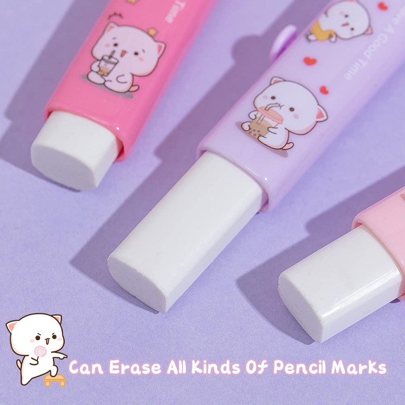 • SUITABLE SIZE Each cute eraser is 90 x 20mm / 3.54 x 0.79 inch (L x W) and the rubber is 6They fit easily into a stationery bag or bag