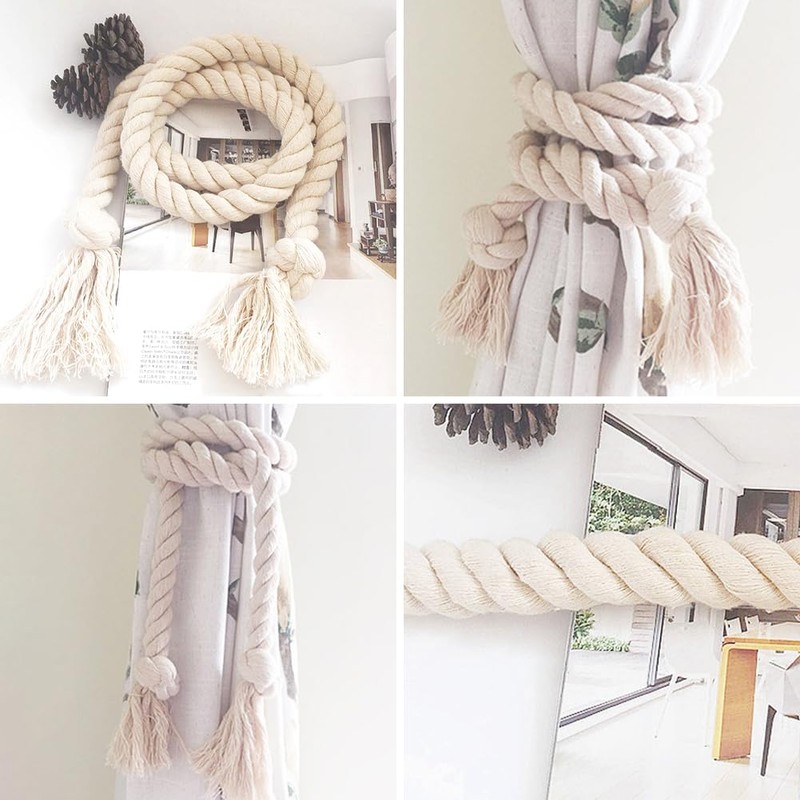 - High-quality material: the curtain tieback ropes are made of cotton blend, tightly woven, not easily deformable and soft and smooth. Curtain cord. The neutral light beige colour matches any living environment. Curtain straps are very suitable for draping curtains. The curtain holder is suitable for medium and thin curtains and gauze curtains, especially for curtains with country floral patterns