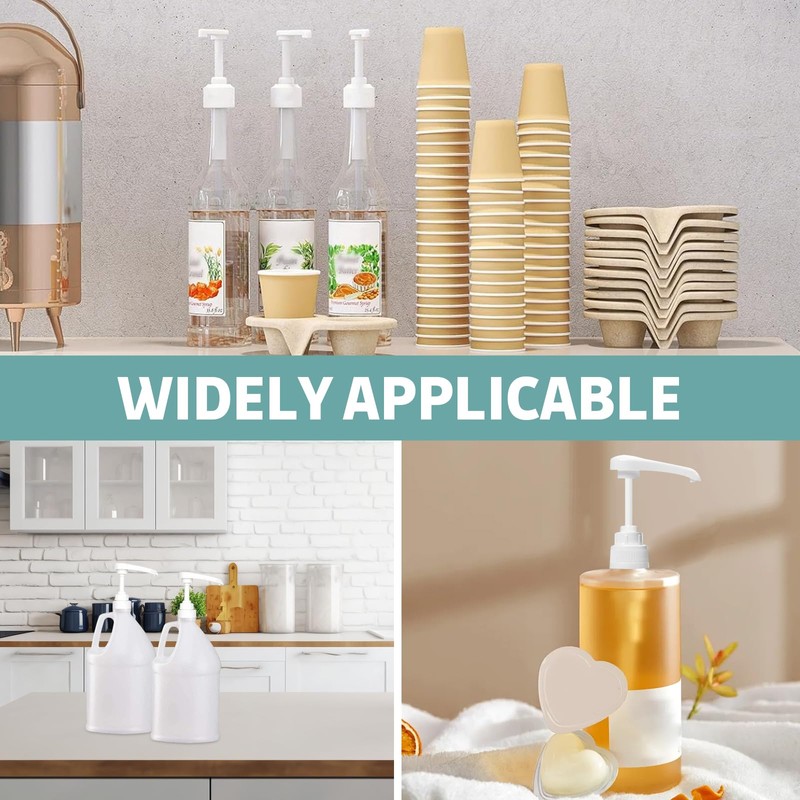 • LEAK PROOF DESIGN Pump dispensers are food safe, the pump dispenser ensures hygienic and safe dispensing of your favorite drinks, our pump dispensers feature a safe, leak-proof mechanism, the pump dispenser prevents spills and ensures a clean and effective distribution of your liquids. So you no longer have to deal with the resulting syrup waste and frequent cleaning of syrup bottles, tables or fridge surfaces.