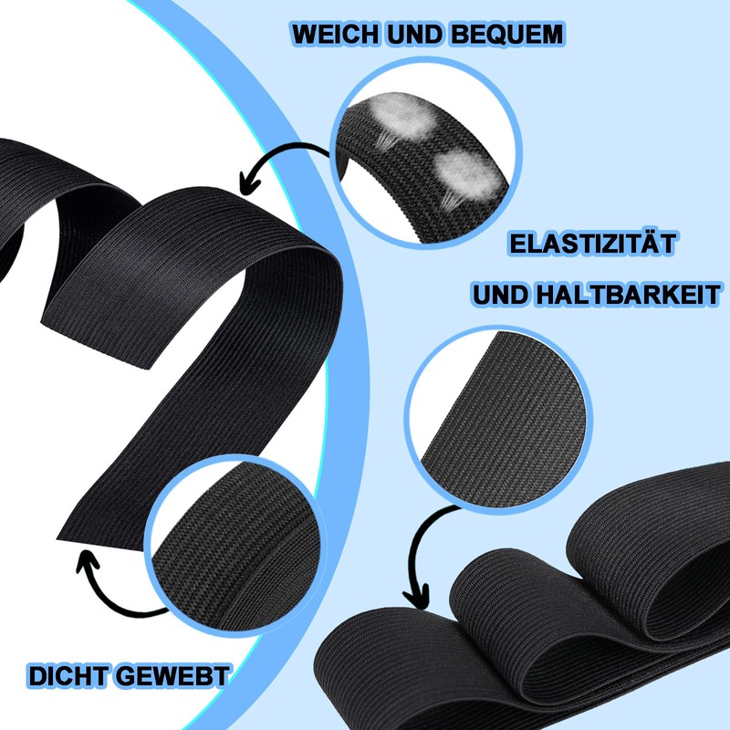 - Elastic band for sewing is made of polyester fabric and latex, tightly woven for softness and comfort.
