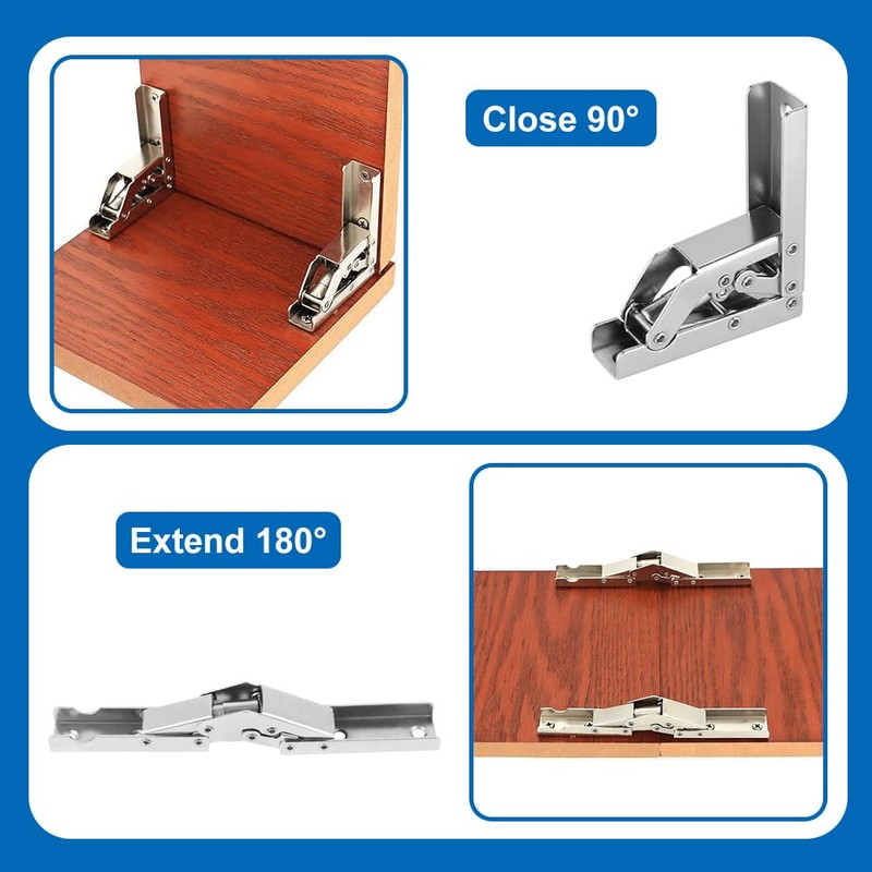 - Easy to install: the package contains 4 folding shelf hinges and 16 mounting screws. Unlike conventional hinges, this folding hinge can be installed by simply screwing the screws into the cabinet door with a screwdriver. So there is no need to drill holes that can damage the cabinet and affect its aesthetics.
