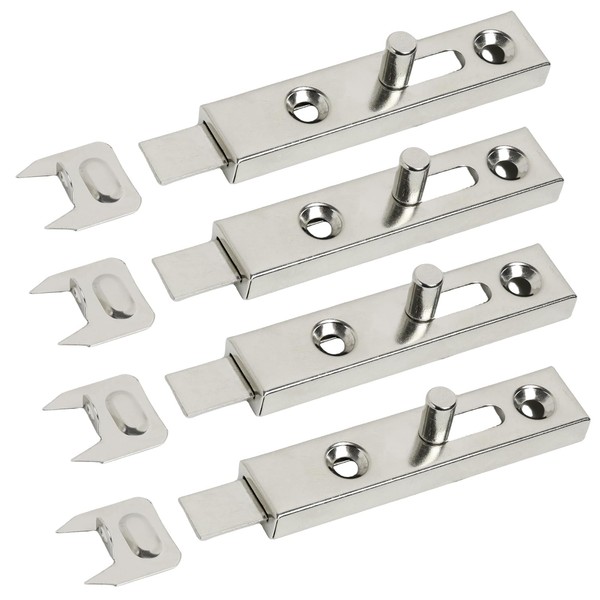 Pack of 4 Furniture Bolt Small Metal Push Bolt for Furniture and Doors Includes Locking Angle Nickel Plated 70mm Lock Latch