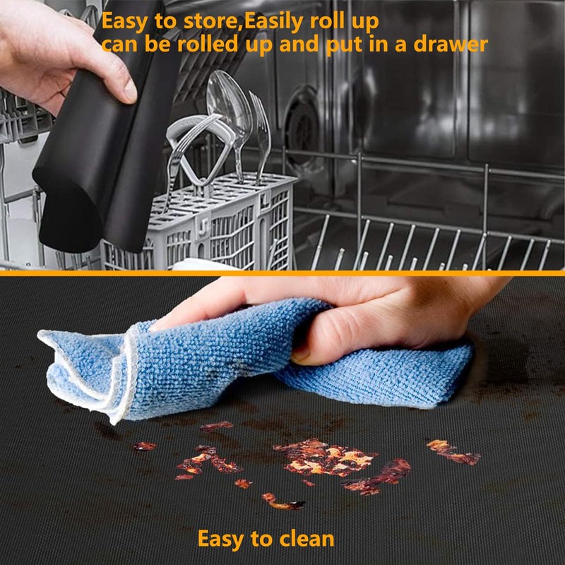 - Multifunction, Use it as You Want: Want something for your Electric & Gas Ovens, Microwaves, Toaster Ovens and something that also works greatly and safely as a stove protectors for gas stove top, baking/cooking mat? These silicone oven liners baking are all you need! They can also be trimmed and cut to meet your exact oven dimensions for a perfect fit