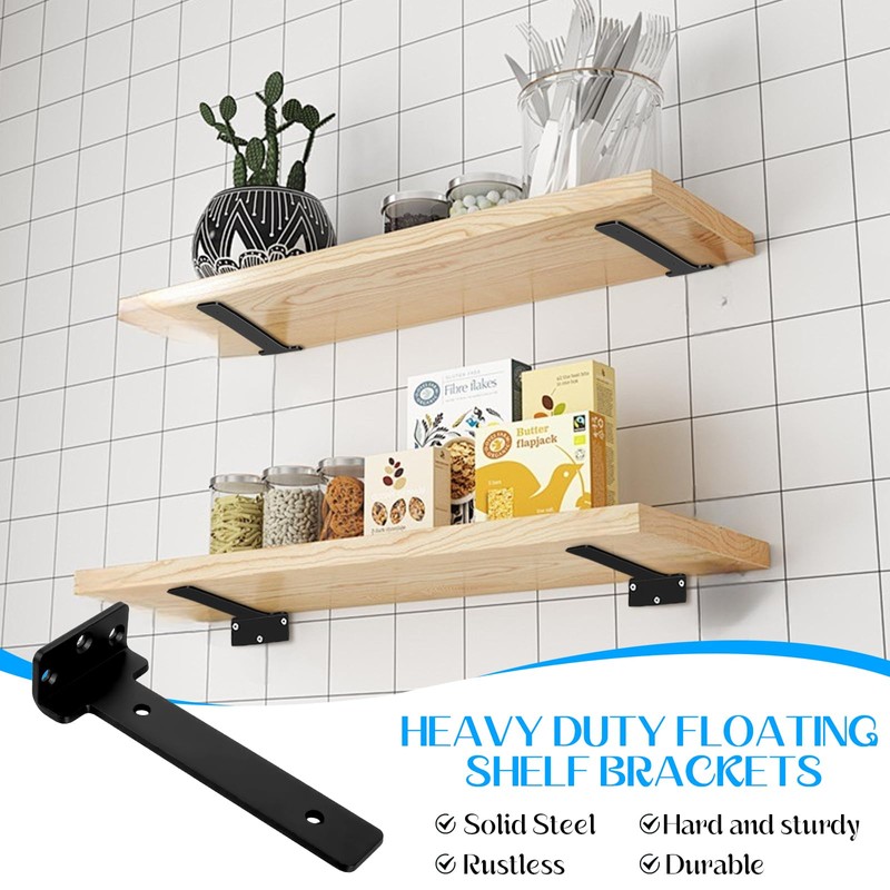 - 【Easy Installation】: Everything you need for hassle-free installation is included! Each set features 4 black L shaped brackets, 12 long screws for walls, 8 short screws for wooden boards and a spirit level to ensure perfect alignment. (Shelf not included.)