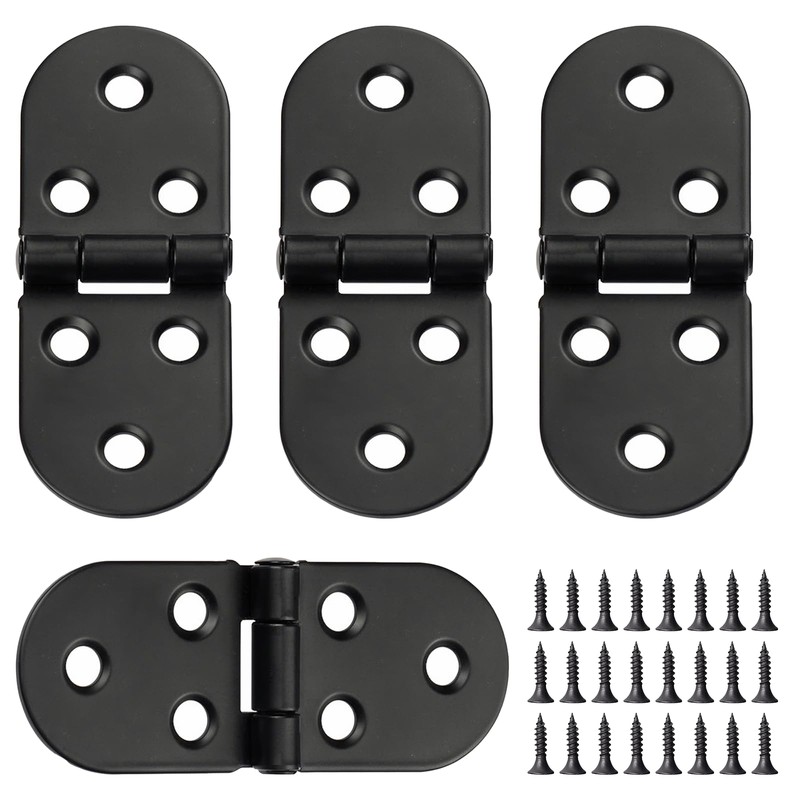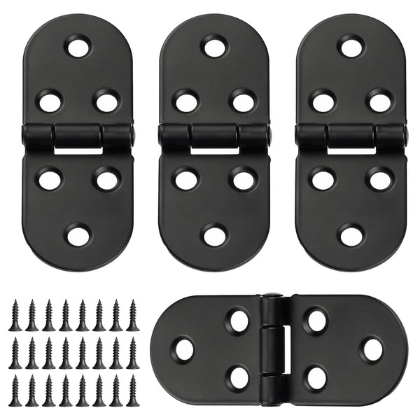 Pack of 4 Hinge, Folding Hinge, 180 Degree Hinges, Foldable Round Edge Hinges, Furniture Hinges, Screw-On Hinge, Table Hinge with Screws for Cupboard, Wardrobe, Wooden Box, Furniture (Black)