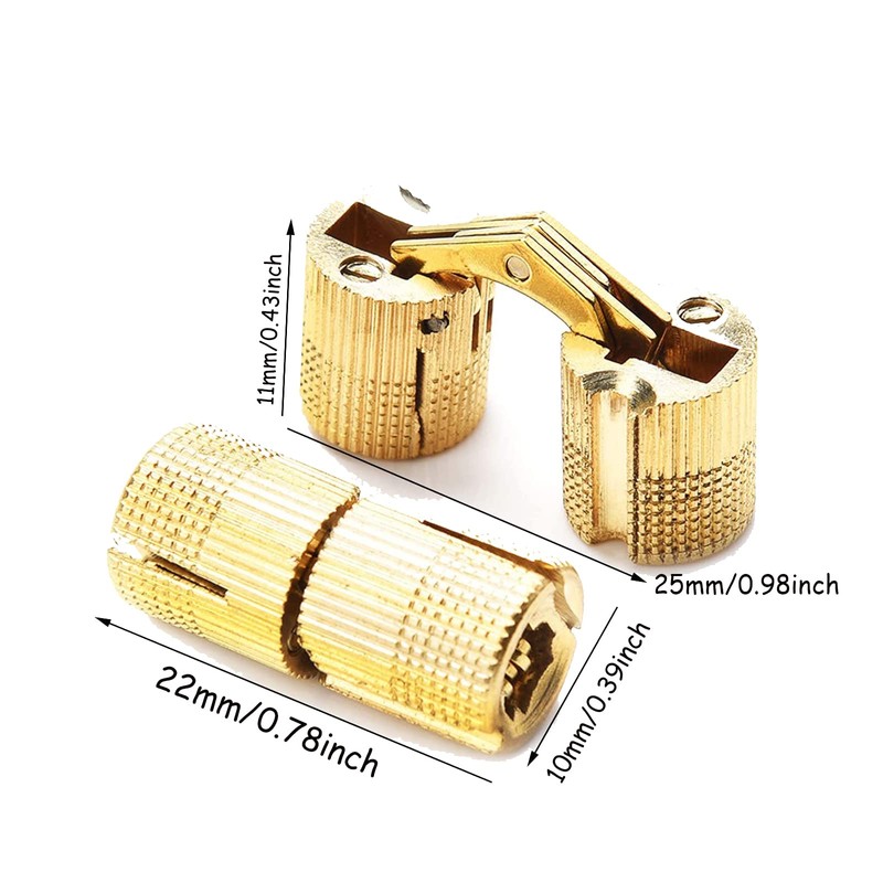 Pack of 4 Invisible Barrel Hinge, Invisible Barrel Hinge, Concealed Brass Hinges, Brass Concealed Hinges, Cylindrical Brass Hinges for DIY Jewellery Box, Hand Crafts