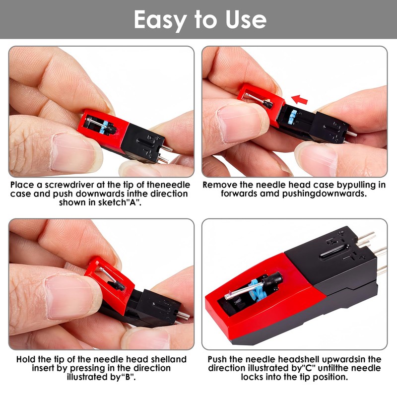 - The easy installation method of these turntable stylus needles makes them an indispensable accessory for any music lover. Thanks to the universal fit, our needles can be easily inserted into a variety of turntable models, whether at home, in the studio or on stage.