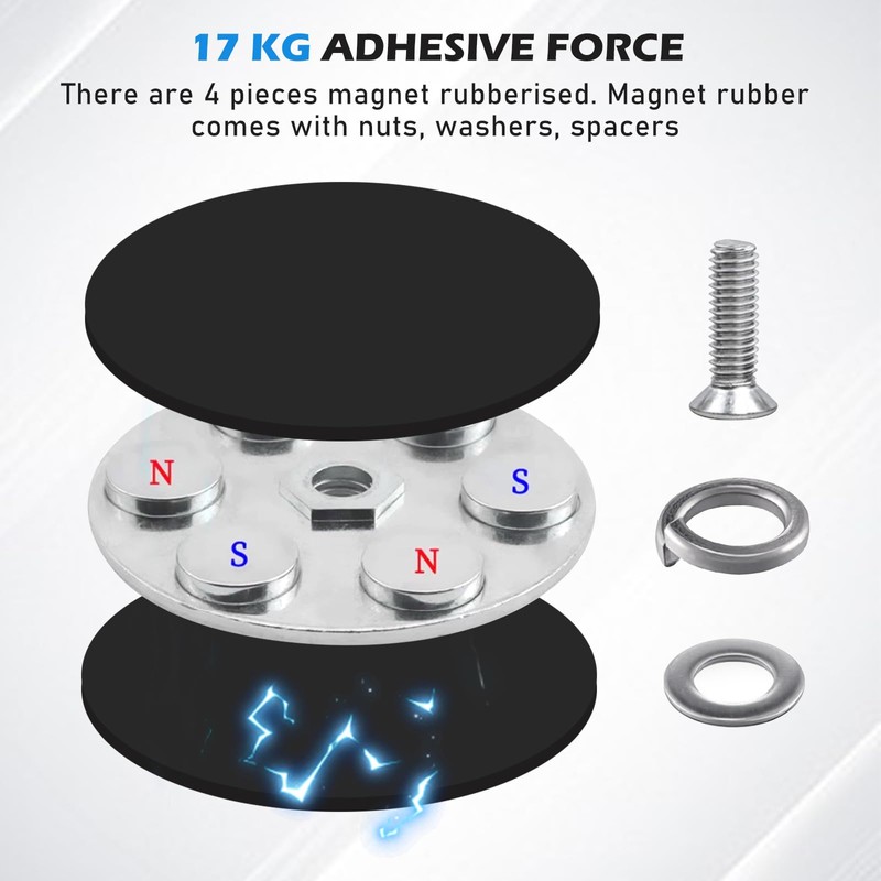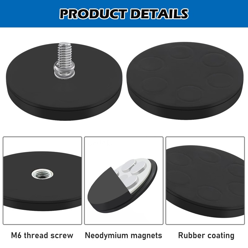 - COMPLETE ACCESSORIES Each neodymium magnets rubberized contains 4 D66mm flat thread M6 magnets, 4 M6 screws, washers and spring latches - everything needed for quick and easy installation.