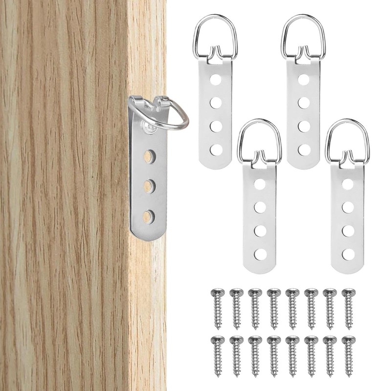 - Sturdy construction made of high-quality material: D ring picture hangers. The picture hangers are made of stabilized steel, which ensures high strength and durability. The D-rings are particularly durable and offer a service life, even under load.