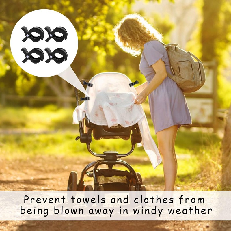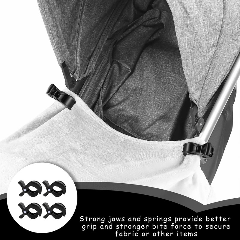 - VERSATILITY: Pram clips are perfect for hanging fabric over a stroller cover or as a holder for a car seat. Also suitable as a clip for baby blankets, mittens, hats or bibs.