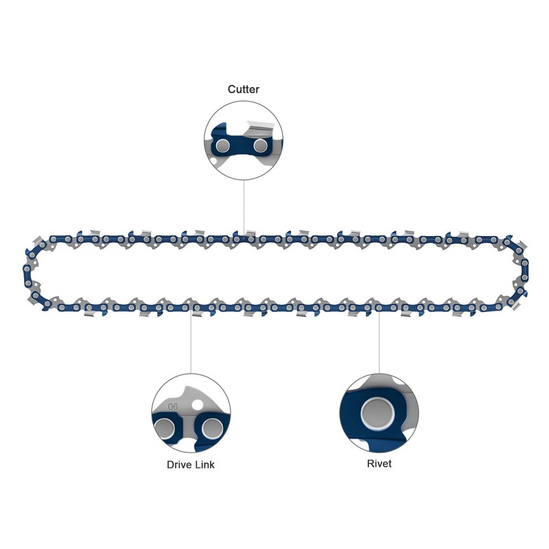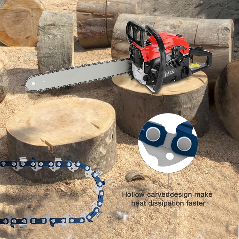 • High-quality material: the saw chain is made of high-quality steel. It has been heat treated and quenched to make it harder and more durable.