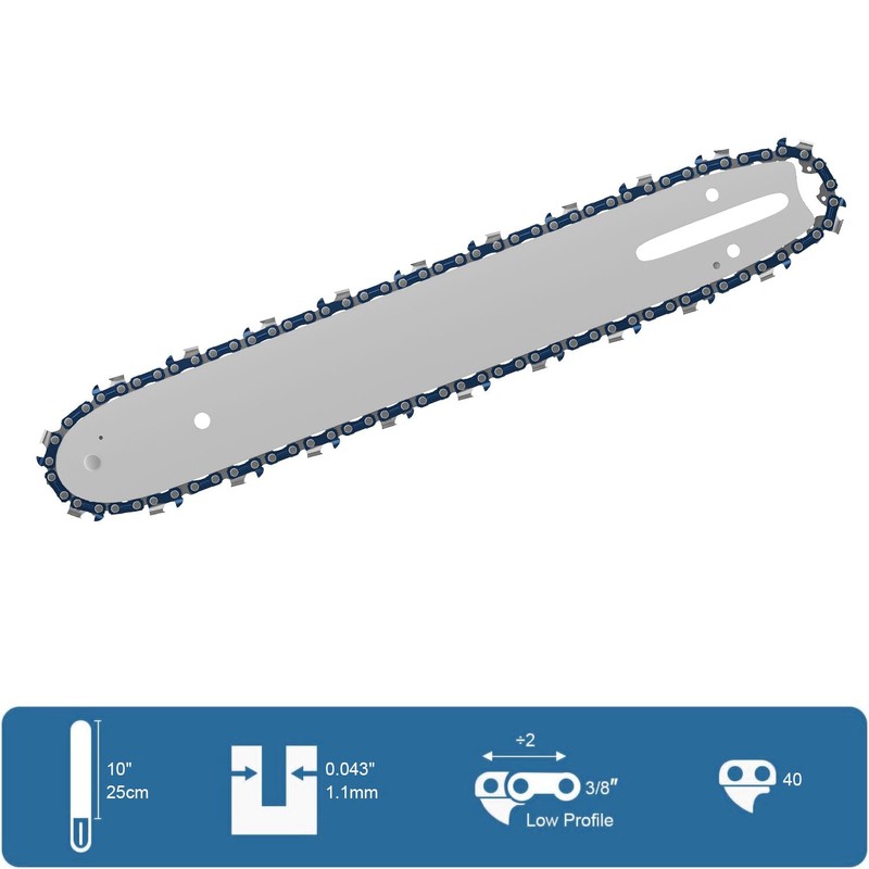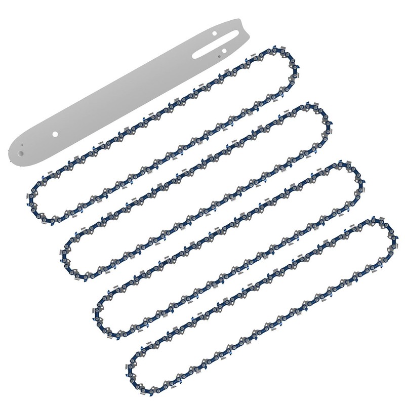 • High value for money: the set contains 4 saw chains, 3/8 inch pitch, 1.1 mm drive link thickness, 40 drive chain links; a 10 inch (25 cm) guide plate; can extend the working time of the chainsaw when felling firewood and trees.