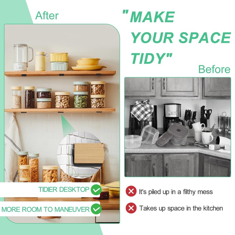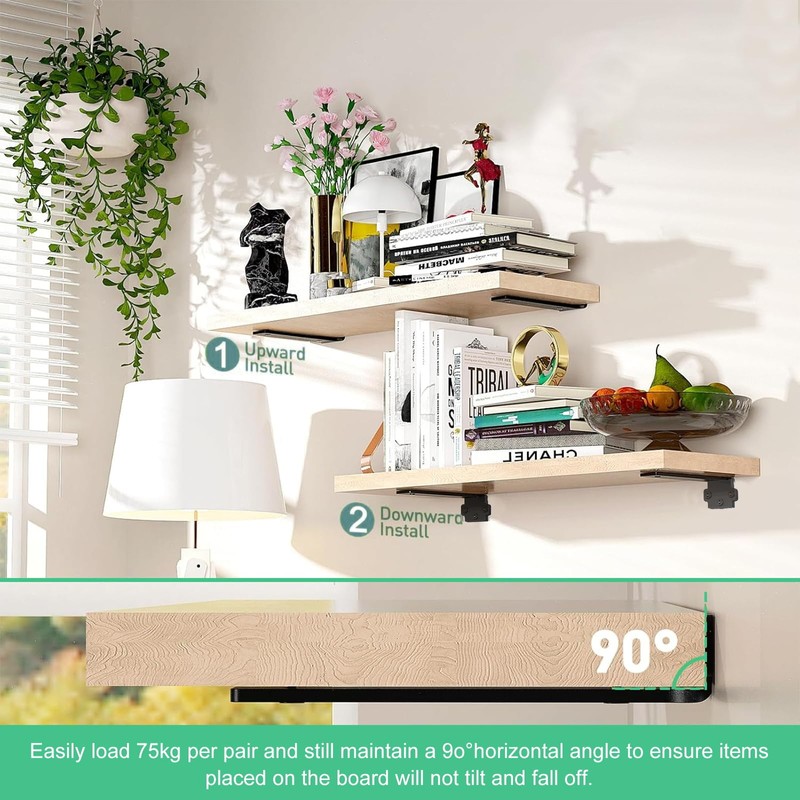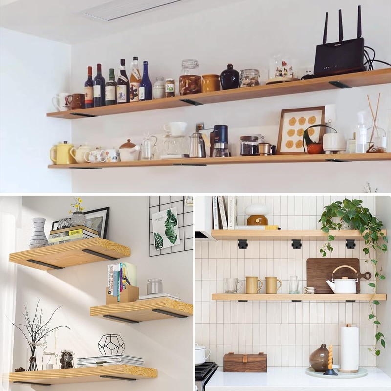 3. Shelf support hanging concealed structure, adaptable to tiles, wood, concrete, etc. for the living room bookshelves, kitchen cabinets, study shelves to offer "no staple vision", matte black, and modern minimalist, Scandinavian style and other mainstream decorative styles seamlessly integrated.