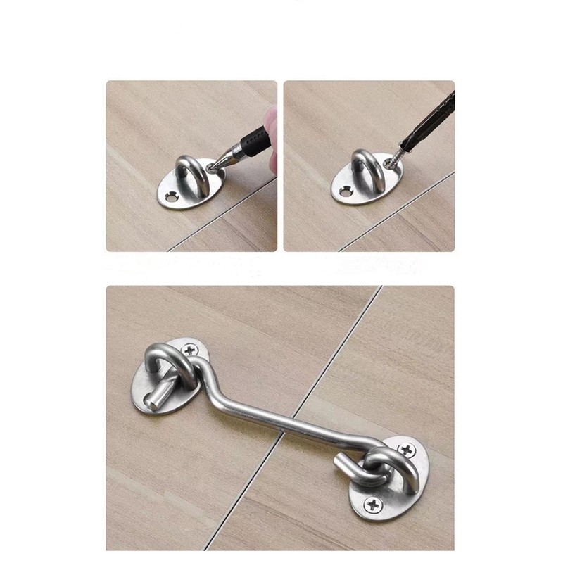 - Easy installation: window hook with eyelet contains matching screws, which can be easily attached to doors, windows or other flat surfaces with screws and door locks.