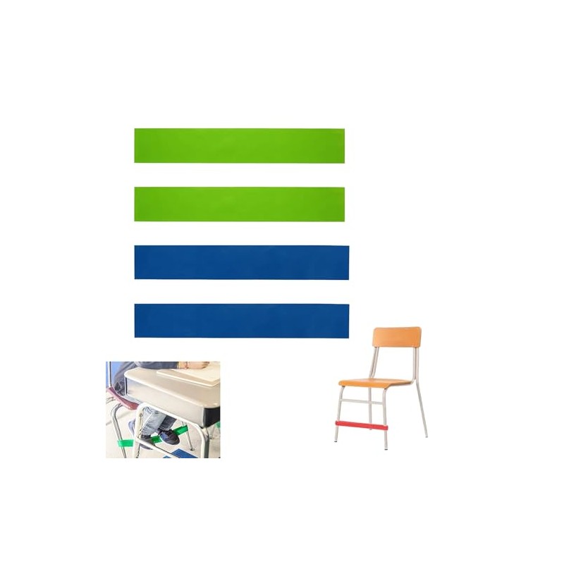 Practical set: the set includes a total of 4 elastic chair bands - 2 in blue (for 15-20 lbs) and 2 in green (for 10-15 lbs). Flexible seat belts are robust and can be easily attached to different chair types. Springy straps for chairs perfect for people who have difficulty sitting still and need an easy way to relieve their energy.