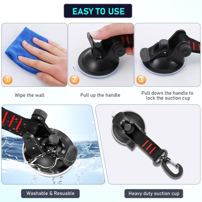 - HIGH QUALITY Made of strong ABS and PVC material, upgrade silicone suction cup and heavy duty nylon strap hook, these suction cups are high temperature resistant, sturdy and durable.