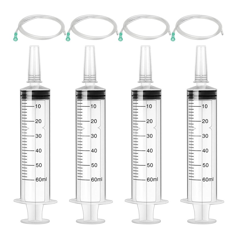 - Syringes 60 ml: you will receive 4 pieces 60 ml plastic syringes and 4 pieces 1 m catheter. The syringes are individually packed in plastic bags, clean and free from harmful substances. The tip of the syringe is equipped with the tip of the catheter without needle, and there is a plastic cap in the packaging that covers the tip of the catheter to keep it clean. High-quality materials: 60 ml syringe is made of high-quality industrial grade polypropylene plastic, each syringe is individually sealed, safe, sterile, odourless, durable, wear-resistant, reusable and easy to clean. Is a good helper for the family.