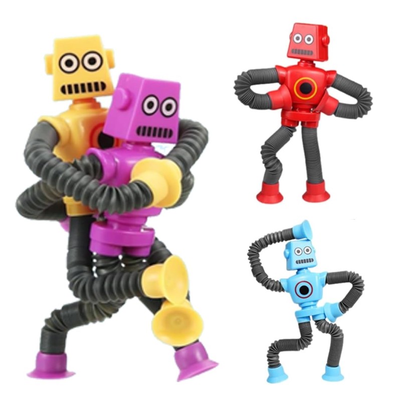 - Robot pop tubes: the suction cups on the arms and legs of the robot toy allow it to stick to smooth surfaces such as mirrors, windows and tiles. It can be used as a sensory toy, bath toy or window toy, etc. Children can like to attach it anywhere and watch it bend and rotate in different directions.