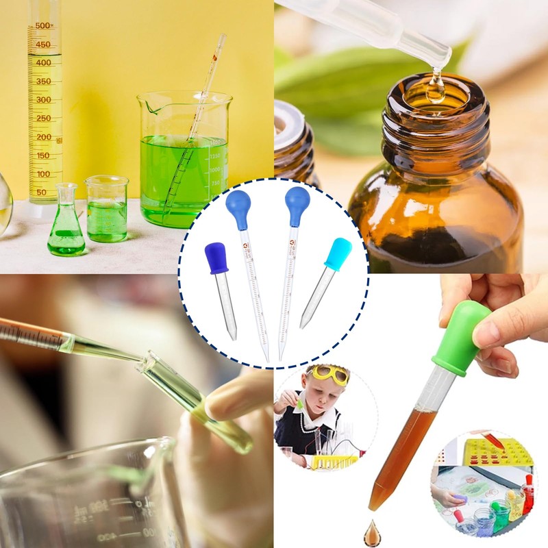 - WIDE RANGE OF APPLICATIONS For transfer and precise measurement of reagents, oils and other liquids. Glass pipettes are suitable for laboratory chemistry, classrooms, handmade soap, food research and more. Silicone pipettes are suitable for feeding medication, hand making, shaping sweets, etc.