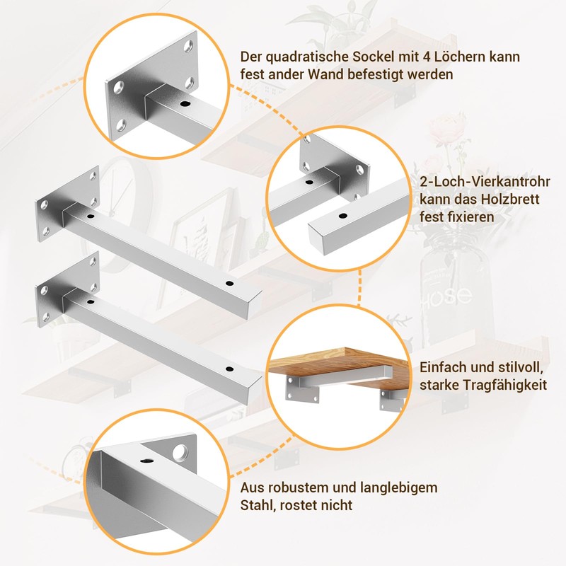 - Easy Installation The package includes 4 heavy duty support wall shelf, screws and pins. With simple DIY tools, you can install industrial shelf brackets for storage and storage.
