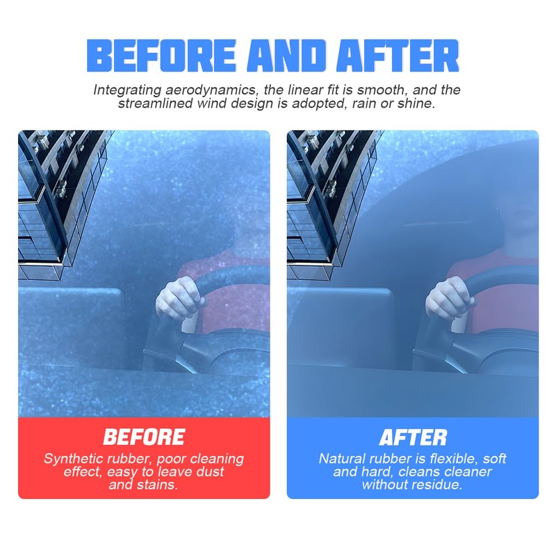 - 【Clear Vision】This boneless wiper strip can give you a clear view and help you stop stressing yourself or have unnecessary accidents when you are driving in the rain. No matter how bad the situation is, you can see the clear road in front of you for a long time, away from the blurring and danger. At the same time, they have very good abrasion resistance, so you can use them for a long time.
