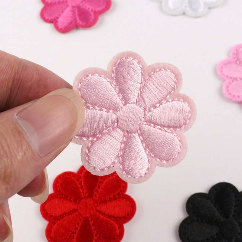 Pack of 40 iron-on patches, mini embroidered patches, embroidered patch stickers, DIY clothing patches stickers, for jeans, trousers, jackets, T-shirt bags (flower shape)