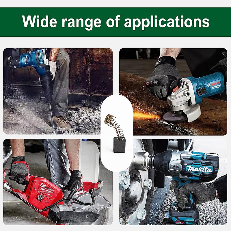 - APPLICATIONS: Carbon brushes can be used in a variety of power tools and motors with a wide range of machine types, such as hammer drills, circular saws, cut-off saws and angle grinders.