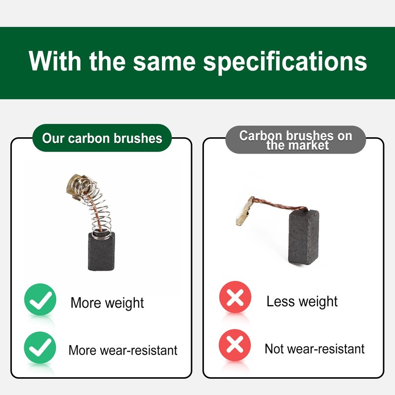 - Product features: carbon brush motor carbon appearance is rectangular or square, different models have different shapes. Replacement carbon brushes are wear-resistant, corrosion-resistant and durable.
