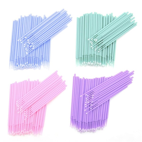Pack of 400 Micro Applicator Brushes, Microbrush Eyelash Extension, Disposable Micro Brushes Eyelash Brushes for Eyelash Extension (Pink/Purple/Light Blue/Mint Green)