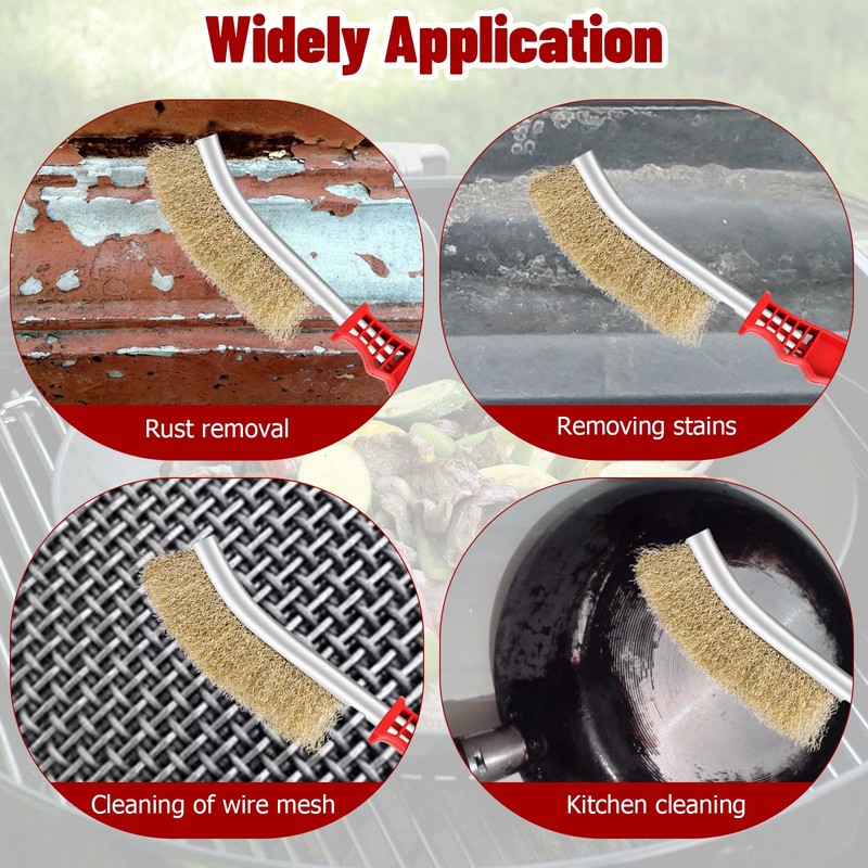 - Wide application: the wire brush grill has long and narrow bristles, perfect for removing stains in tight areas, can be used for decontamination of metal surfaces and the removal of rust, grinding, deburring, cleaning, can also be used for non-metallic surfaces to remove dirt or residue.