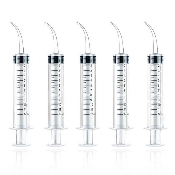 Pack of 5 Disposable Dental Syringes 12 ml Plastic Dental Irrigation with Curved Tip Watering Syringe for Dental Care Cleaning Pets Care Dental Syringe Dental Syringe Dental