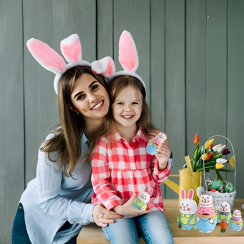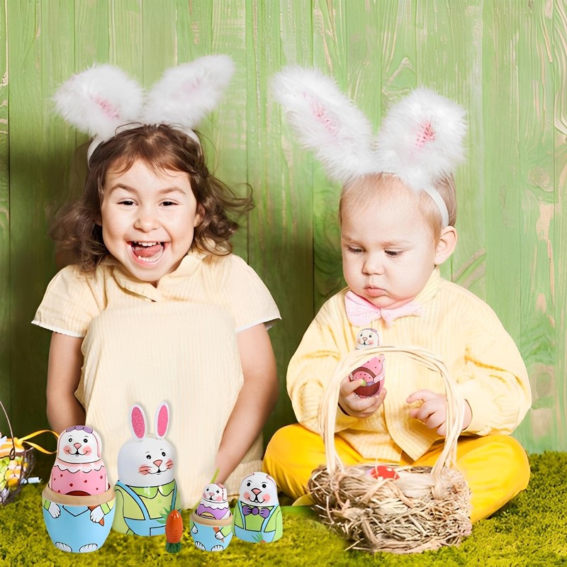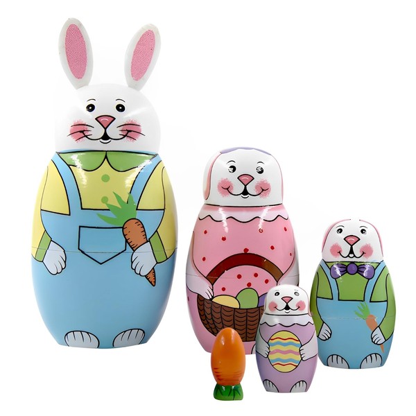 Pack of 5 Easter Russian Matryoshka, Easter Bunny Children, Matryoshka for Children, Easter, Wooden Animal Nesting Dolls with Cute Rabbit and Carrot Pattern, Russian Nesting Dolls Gift