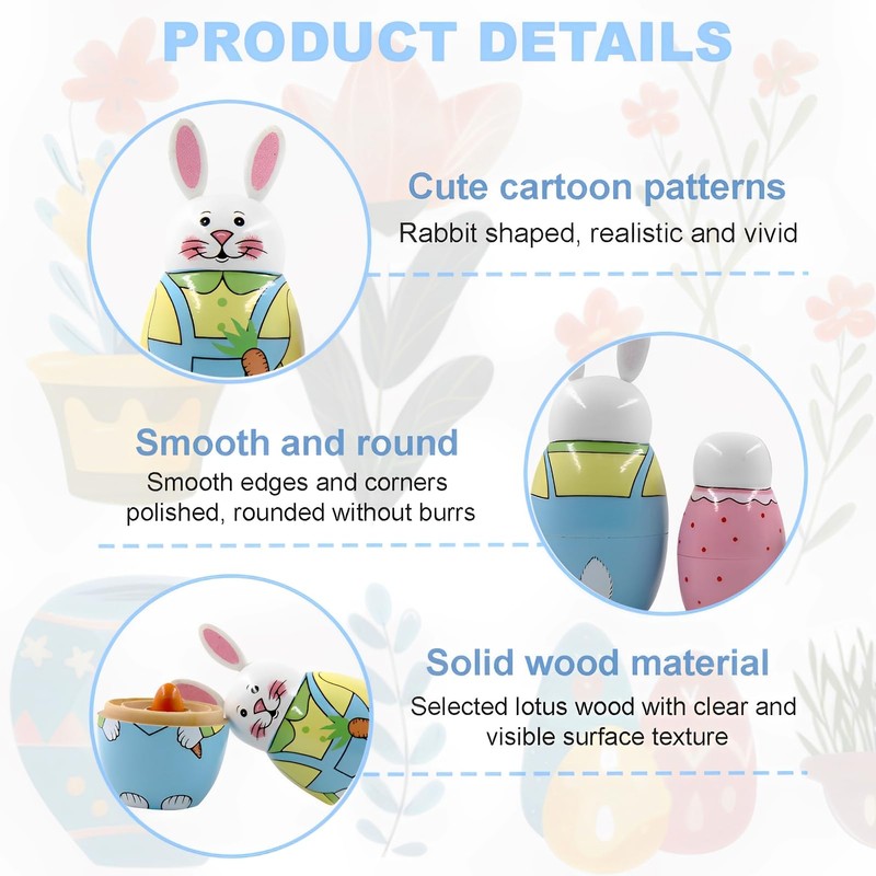 - 【High-quality wood with smooth surface】: The nesting dolls are made of durable wood with careful workmanship. The polished, burr-free surface provides a comfortable feeling in the hand and protects children from injury. They are durable, tasteless and fade resistant, so they will last for a long time.